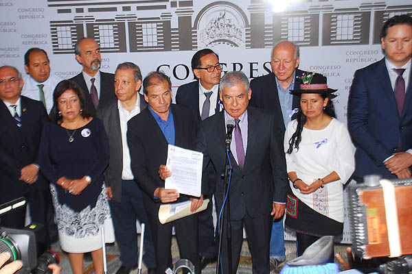 Con el respaldo de Fuerza Popular (FP), la oposición presentó la segunda moción de destitución contra Pedro Pablo Kuczynski. El pedido multipartidario fue alcanzado al Área de Trámite Documentario del Congreso de la República a las 9 y 45 de la mañana de ayer, con un total de 29 firmas, entre las que se incluyen las rúbricas de las fujimoristas Nelly Cuadros, Gladys Andrade, Roy Ventura y Carlos Domínguez.