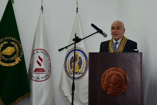 El Decano del CNL y Presidente de la Junta de Decanos de los Colegios de Notarios del Perú dijo que hace 55 años, “un día memorable como hoy (25 de julio)” se reunió un grupo de Notarios, los que fundaron el Colegio de Notarios de Lima, ello fue posible por la existencia de la Ley 16607, la que permitía la creación de los Colegios de Notarios en el país, como personas jurídicas de Derecho Público Interno.