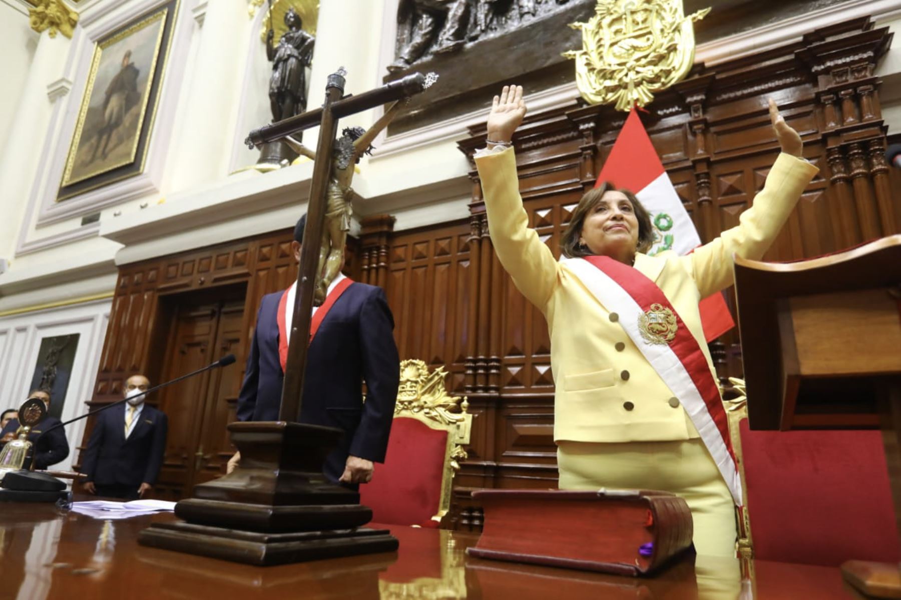 Boluarte juró este miércoles ante el pleno del Congreso como la primera presidenta de la historia de Perú, tras la destitución de Castillo, acusado de dar un golpe de Estado.