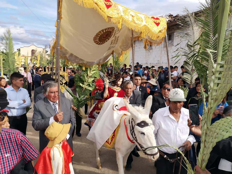 Al promediar las 03:00 pm, la imagen del Señor de Triunfo, salió de precesión montado en un burrito blanco (pollino), que no haya sido montado aun por nadie. A ello se suma una decena de burritos blancos cargando caballetes con canastas de frutas selectas. La procesión de Domingo de Ramos inició en la Capilla Santa Barbara y culminó en el atrio de la iglesia Santo Domingo de Guzmán, donde se le hizo entrega una parte de las frutas al sacerdote de la iglesia matriz.