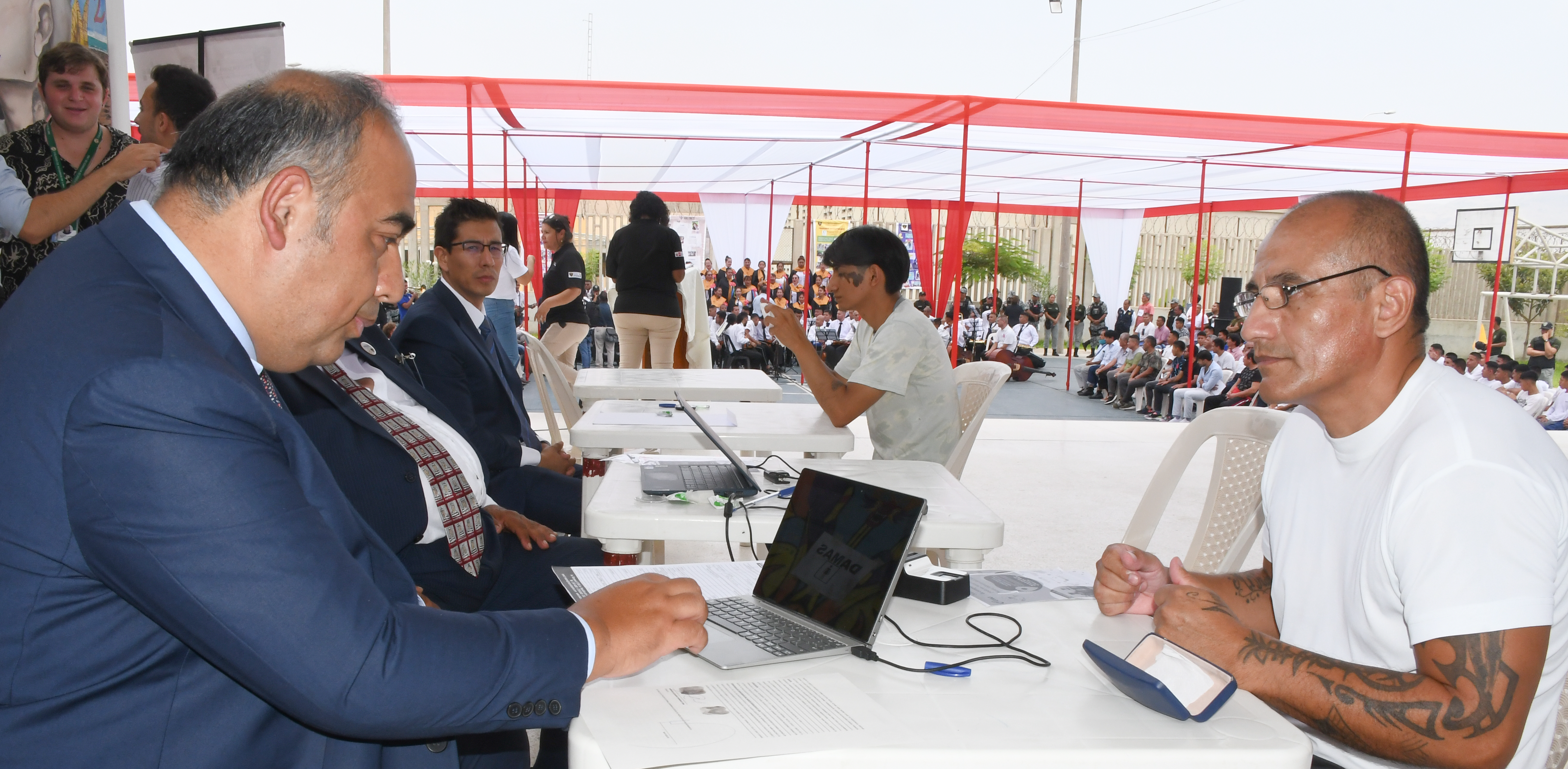En la cita estuvieron presentes, además del Dr. Hopkins Torres, el superintendente nacional de la Sunarp, Armando Subauste Bracesco; el presidente del Inpe, Javier Llaque Moya; y el director del establecimiento penal Ancón II, Milton Guevara Mendoza; entre otras personalidades.