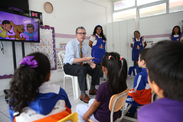 El titular visitó escuela de educación inicial para participar del inicio del acercamiento al idioma inglés de niños de 3 a 5 años