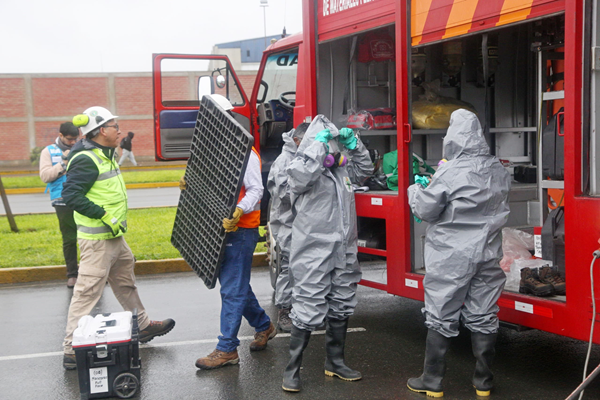 “Se trata del primer ejercicio realizado en el Perú a fin de medir cuál es la capacidad de todas las instituciones para responder en conjunto ante una emergencia con químicos peligrosos, y lo hacemos en el Callao porque es la región donde más químicos se manejan y salen al resto del país”, señaló la gerente del Comité de la Industria Química de la SNI Rosa María del Castillo, al precisar que la primera respuesta ante una emergencia viene de parte de la empresa que conoce sus productos y tiene sus brigadas, mide sus posibilidades y luego llama a los bomberos.